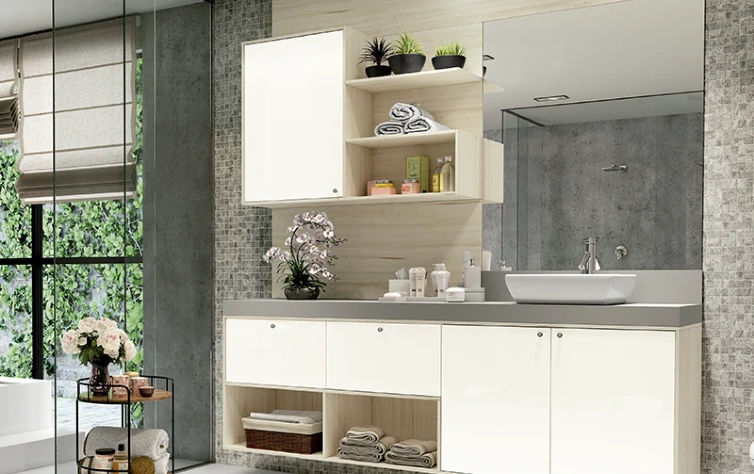 Um dica é apostar em cores claras nas paredes e no piso, para trazer amplitude e utilizando móveis com tamanhos e estilos adequados no ambiente. Você também pode apostar em algumas texturas, como o exemplo acima. Os móveis planejados da Italínea contam com divisões internas, prateleiras e nichos, que ajudam a manter o banheiro organizado.