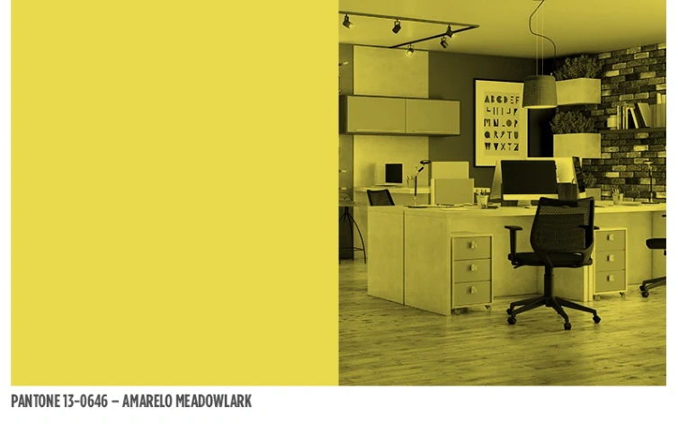 Você quer um ambiente mais alegre? O amarelo Meadowlark é a opção certa. Por conta do eclipse solar que ocorreu em agosto, ele se tornou uma das cores de 2018.