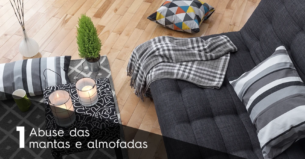 Os ventos frios do inverno nos obrigam a buscar abrigo e aconchego em camadas e mais camadas de tecido. Aproveite essa situação e dê uma nova cara para a decoração dos seus ambientes. Disponha almofadas, mantas e cobertores sobre os móveis da casa para unir o útil ao agradável. Essa técnica vale principalmente para dar um destaque aos sofás e camas da casa. Uma dica extra para quem estiver inspirado é buscar um diferencial com estampas e padrões mais ousados nos tecidos.
