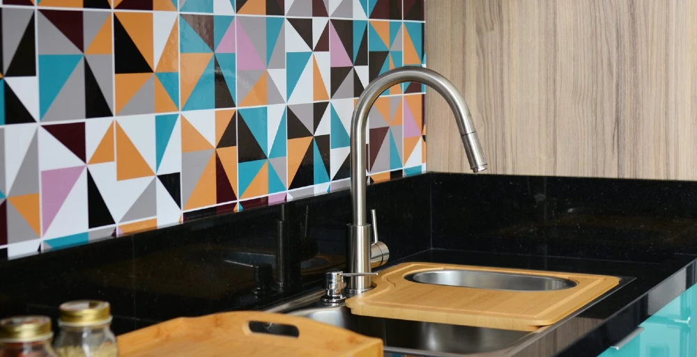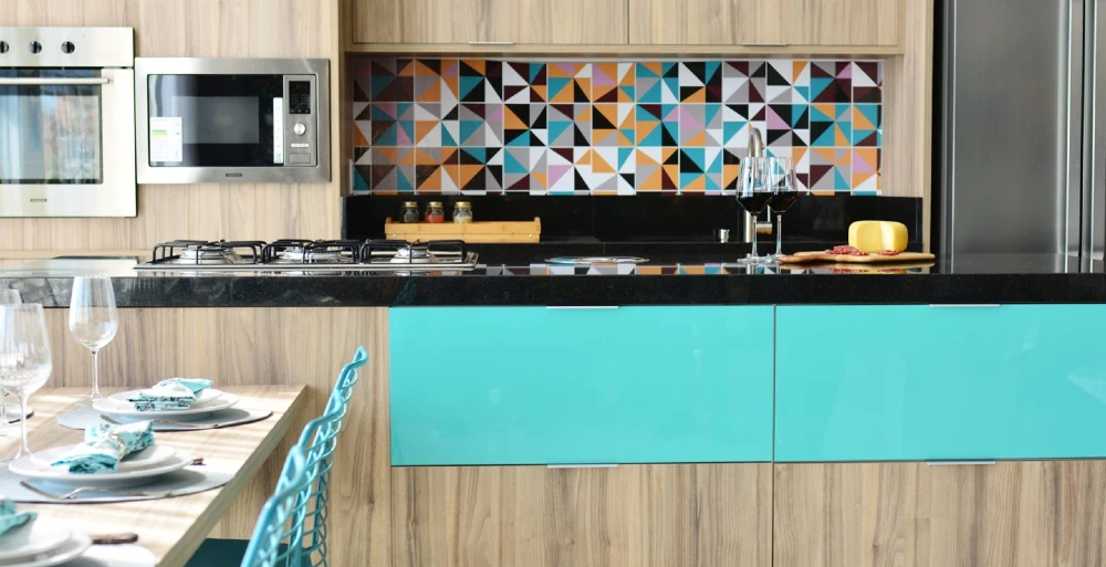 Outra maneira é apostar na cor para as paredes da sua casa. Neste projeto, criado pela Italínea, usamos alguns detalhes em Coral nos azulejos da cozinha, mesclando com cores complementares.