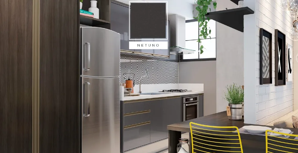 O padrão é um cinza escuro brilho, com partículas metalizadas em sua composição, que relembram estrelas. O nome Netuno é inspirado no último planeta do sistema solar.