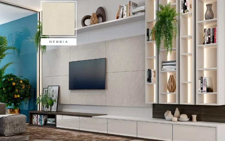 Com tonalidade clara e desenho sutil, o padrão Nébbia é inspirado na suavidade das nuvens, desenvolvido para harmonizar com os demais padrões e possibilitar ambientes mais sóbrios e neutros. A mescla do desenho delicado, com a textura de tecido, confere versatilidade na sua aplicação, permitindo que funcione como tecido, ou como unicolor com microtextura. Seu nome é inspirado na névoa.