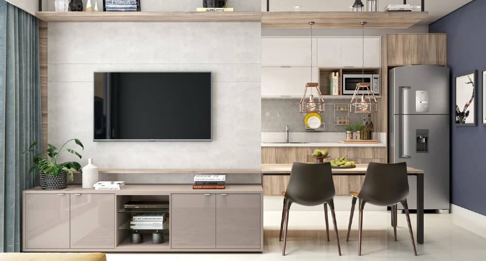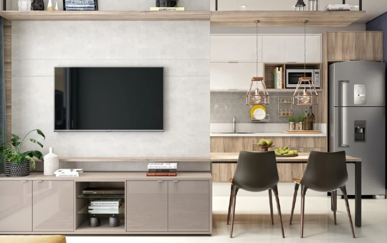 Nada de paredes. Uma tendência que veio para ficar em 2021 é integrar os espaços. Além de melhorar a circulação pelos cômodos, este conceito traz uma sensação de amplitude e aconchego. Uma ótima solução para quem deseja reunir a família com praticidade e conforto.