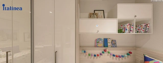 • BP Brilho Salar nas portas do guarda-roupa e dos nichos do Dormitório Infanto-juvenil